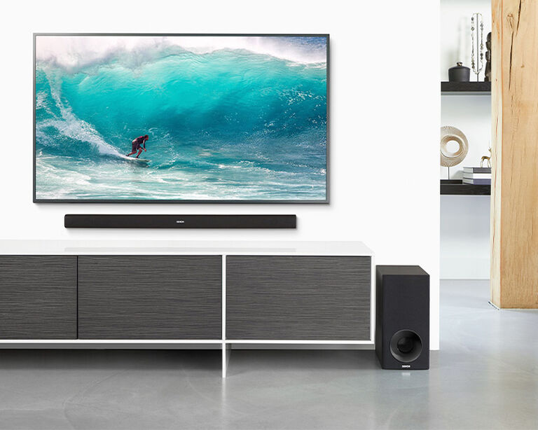 With Dolby Digital and DTS decoding, the Denon DHT-S316 sound bar with wireless subwoofer powers dynamic theater-quality audio in a minimal, low-profile design. Quickly connect your TV through the HDMI (with Audio Return Channel) or Optical input.