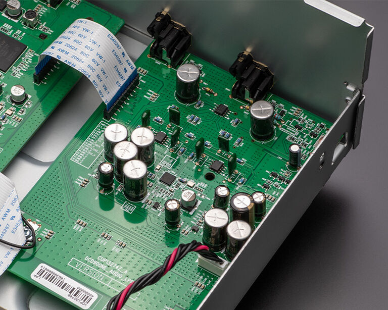Built with specifically fitted power transformers and increased physical separation between the different audio and digital boards, reducing both vibration and interference.